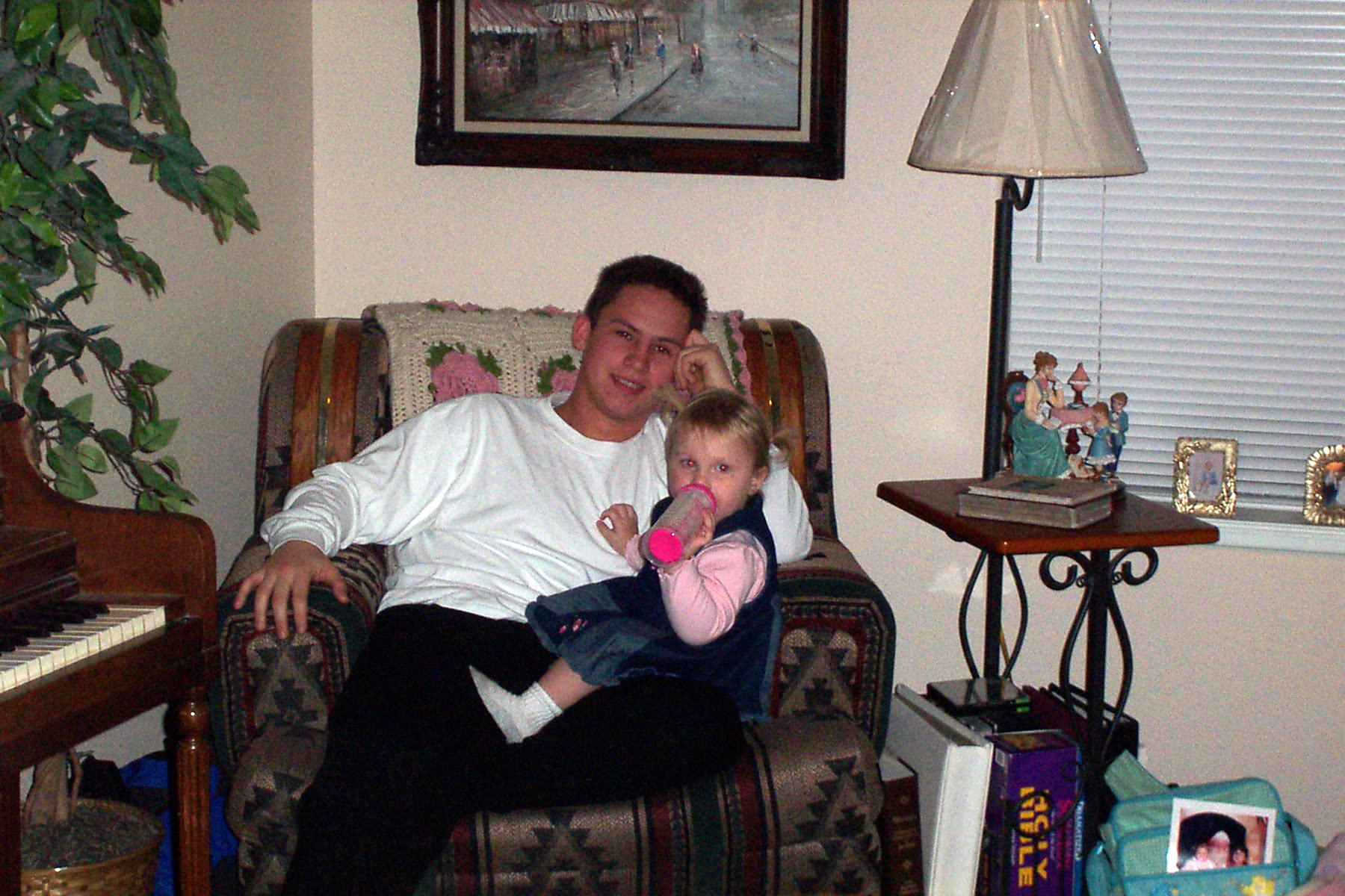 This is Luke and my lil cousin Tamera haha she fell in love with him and just went and sat on his lap:o) isn't she cute!!